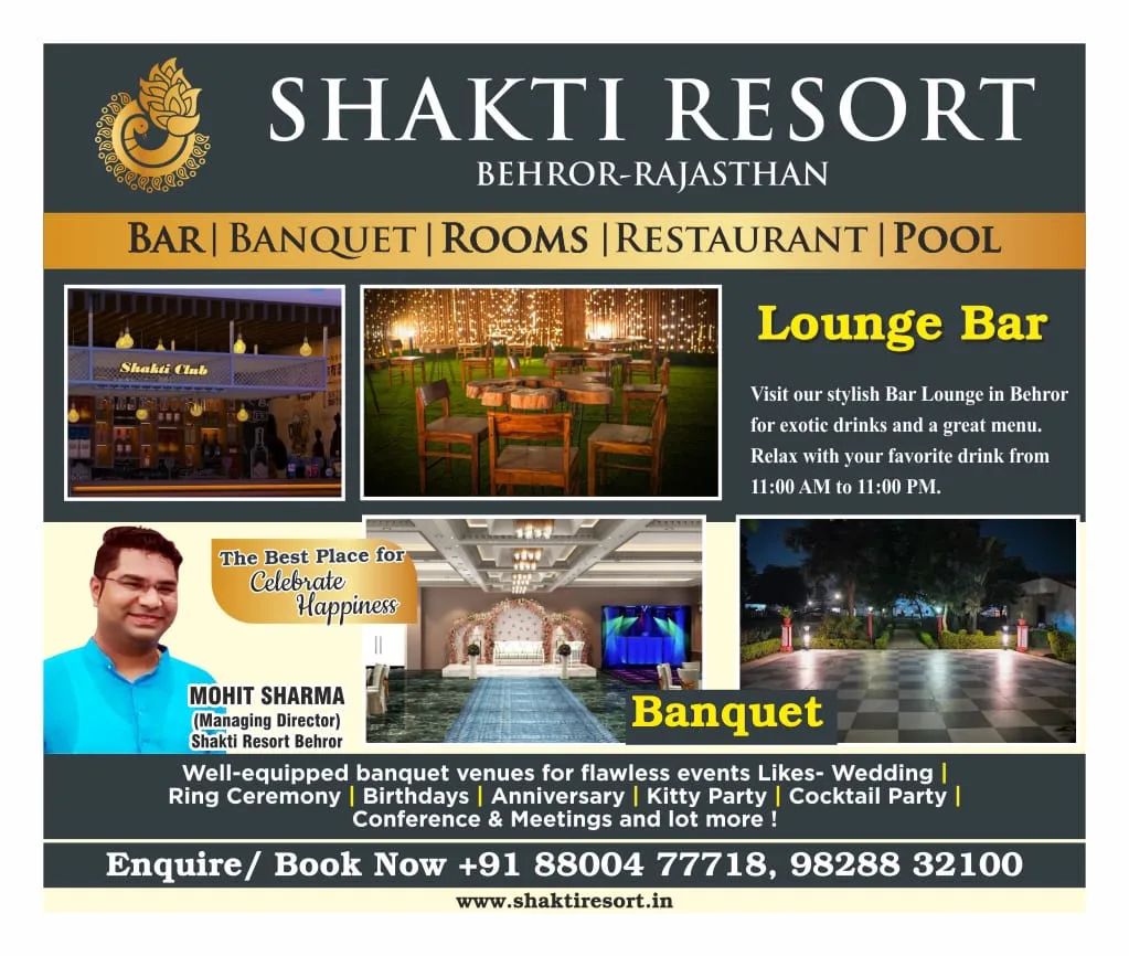 Shakti Resort Behror 133rd Milestone, NH-48 (Delhi-Jaipur Highway) Behror, Rajasthan 301701 📞 +91 8800477718